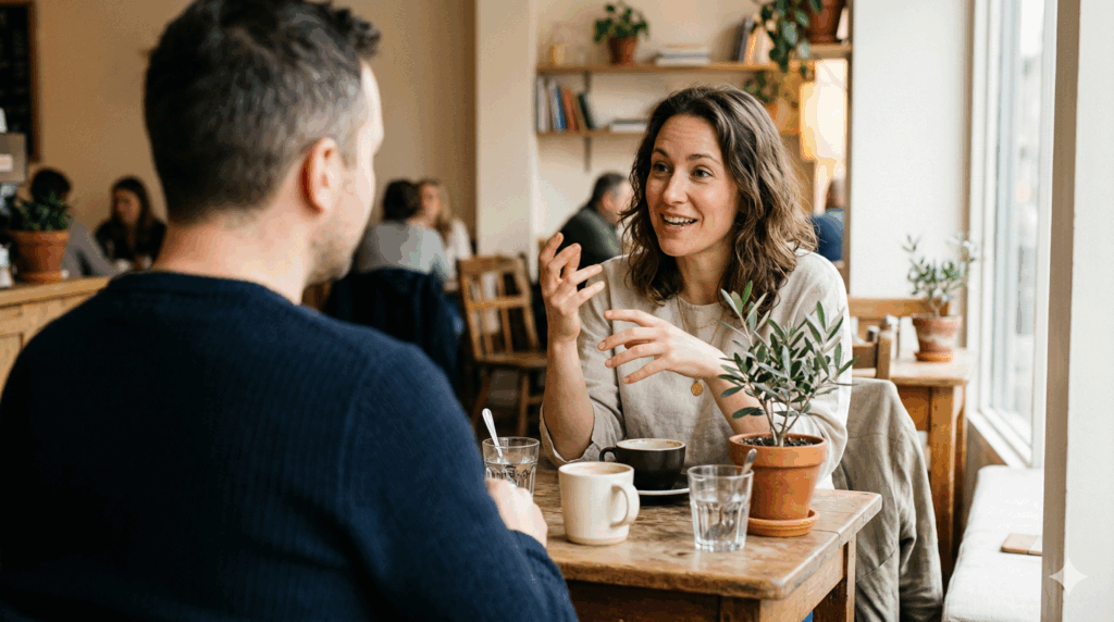 Als zij vertelt dat ze graag wil reizen door Zuid-Amerika, zeg je met een glimlach: “Dat klinkt goed, maar wie past er dan op onze kat als wij een half jaar weg zijn? Minoes kan echt niet zo lang alleen.” Je schetst speels een toekomstig plaatje waarin jullie samen voorkomen. Zij ziet dat beeld voor zich. En als ze lacht, weet je dat het beeld haar bevalt. Dit is subtiel, speels en het communiceert zonder woorden: ik zie meer in ons dan alleen dit gesprek.